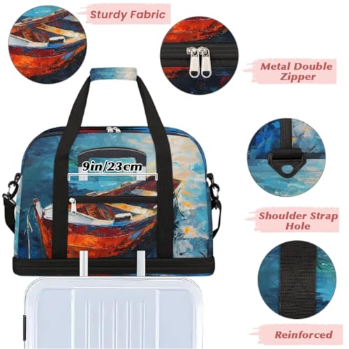 Travel Duffel Bags Oil Painting Boat Foldable Weekender Bags for Women with Shoes Compartment Waterproof & Tear Resistant Carry on Overnight Luggage Duffel Bag Shoulder Sports Tote Bag 5