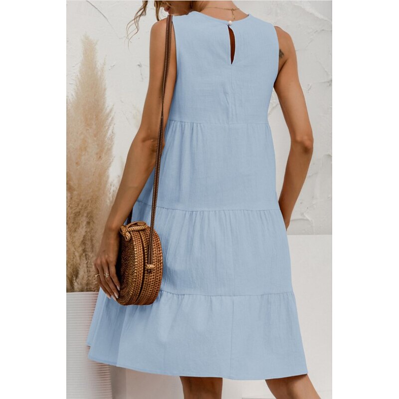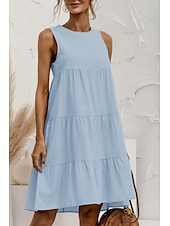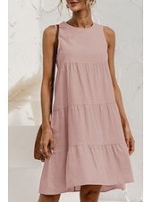 More information about Women's Mini Dress Linen-Inspired Dresses Cotton Linen Dress Fashion Classic Outdoor Daily Weekend Regular Fit Plain Sleeveless Crew Neck Black Pink Army Green Orange Summer