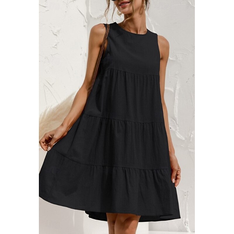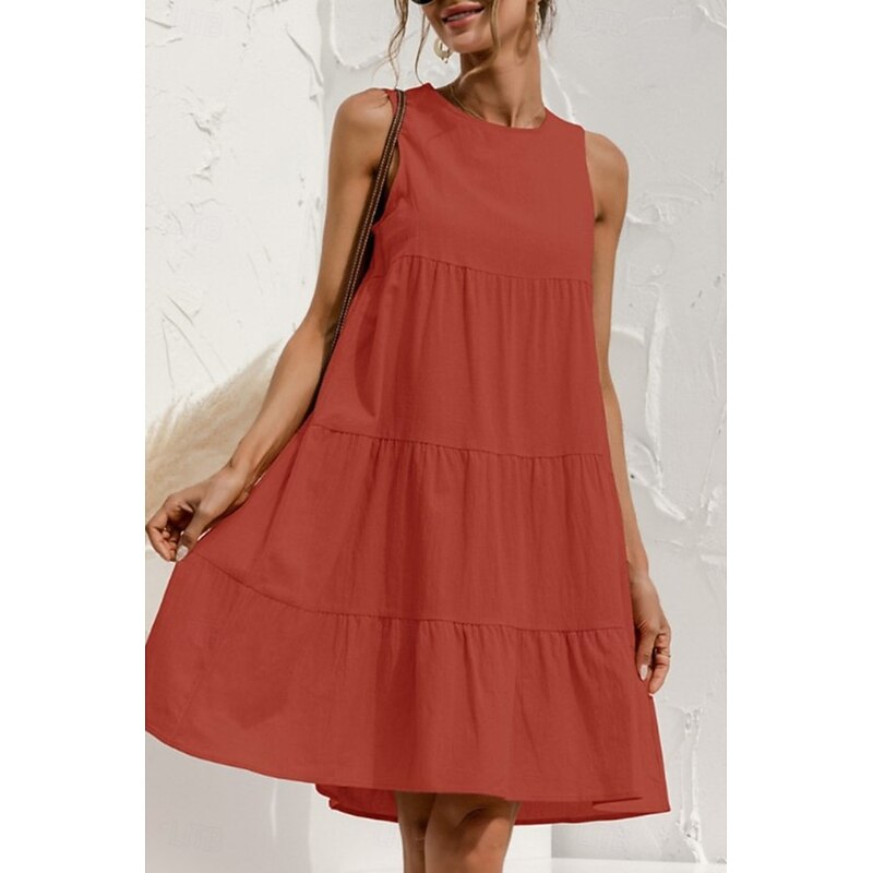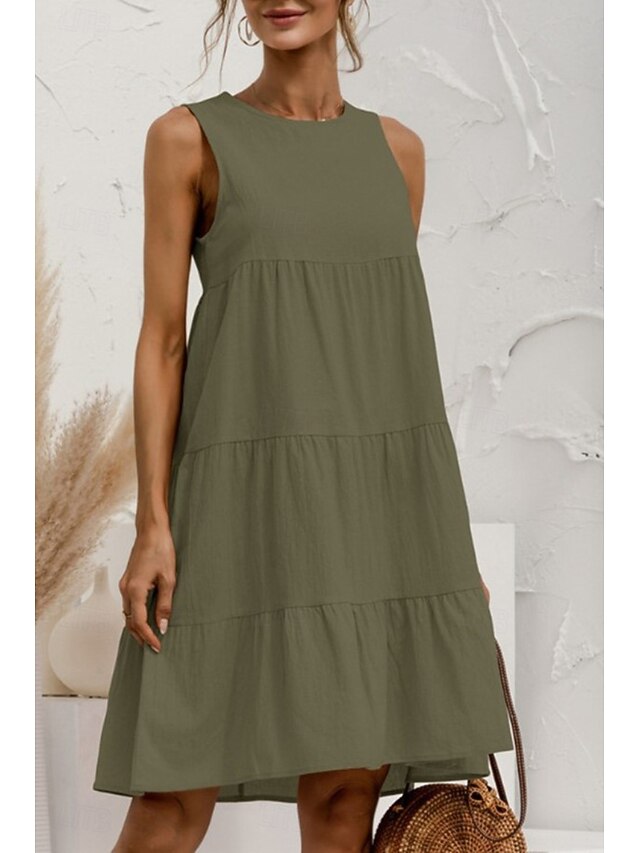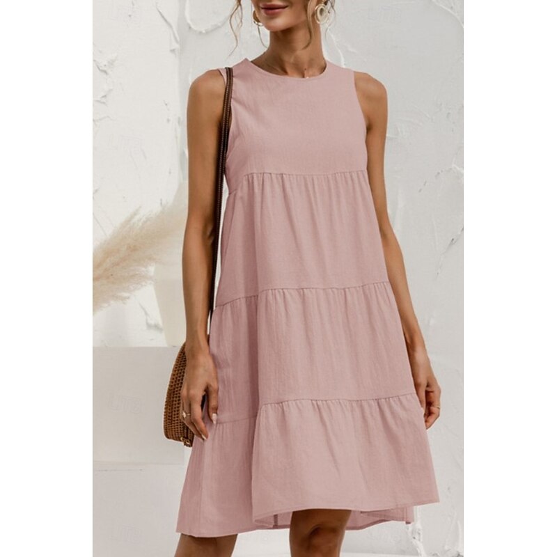 HOT ! Women's Mini Dress Linen-Inspired Dresses Cotton Linen Dress Fashion Classic Outdoor Daily Weekend Regular Fit Plain Sleeveless Crew Neck Black Pink Army Green Orange Summer