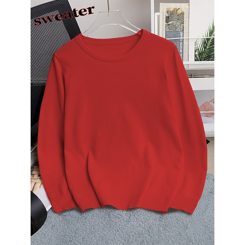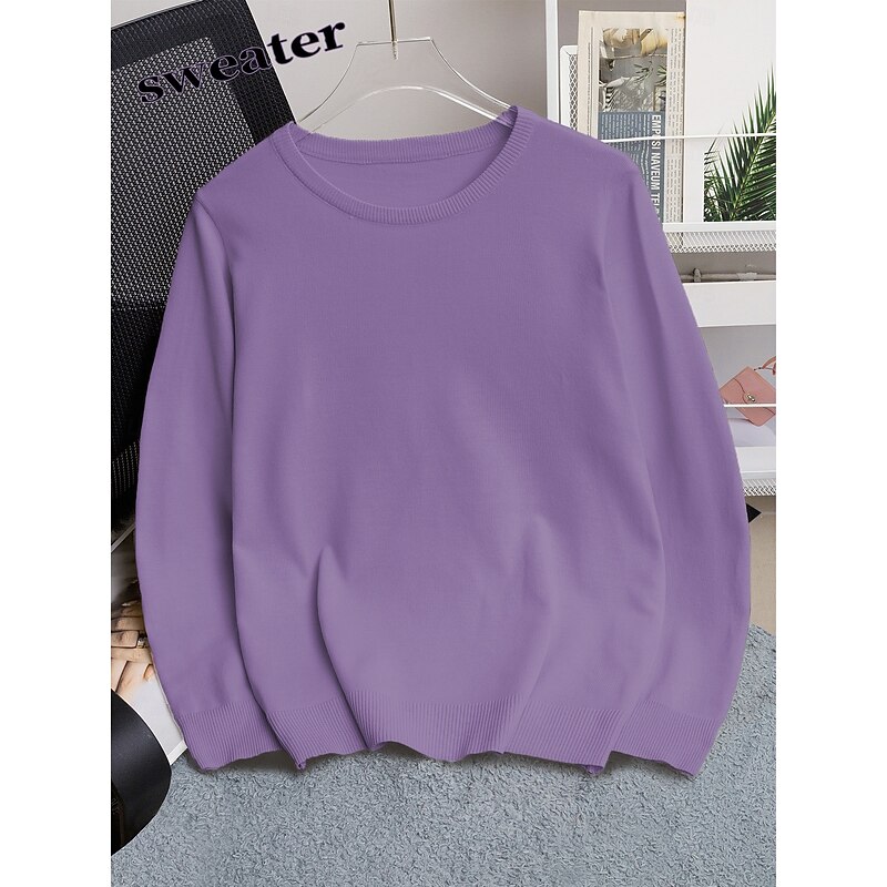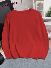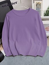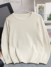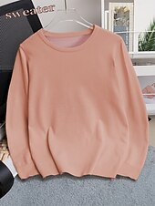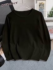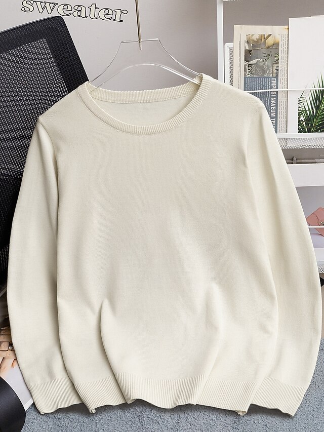 More information about Women's Pullover Elegant Vintage Daily Solid Color Ribbed Crew Neck Knitted Long Sleeve Regular Tops Knit School Outdoor Home Black White Spring Fall