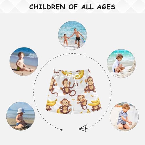 Pigsaly Boys' Swim Board Shorts Yellow Bananas Funny Brown Monkeys Boy's Swim Trunks Kids Swimwear 3T 4