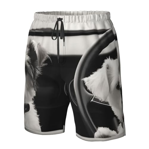 • Men's Printed Swimming Trunks -- This Funny Men's Patterned Swimming Trunks Are Available In 6 Sizes: S/M/L/XL/XXL/XXXL Please Go Through The Size Chart. Choose The Right Size. The Two puppies driving mens borad shorts is suitable for surfing, swimming, boarding, sailing, sunbathing, ball sports, beach hangouts, casual wear, running errands or other outdoor activities