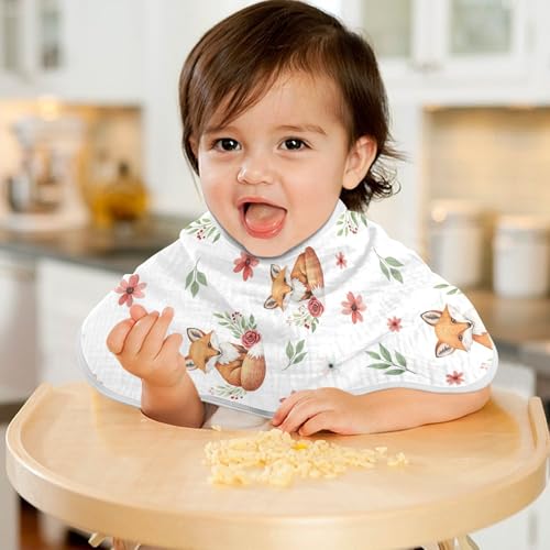 More information about 2 Pack Muslin Burp Cloths Floral Fox White Cotton Baby Burp Cloths Ultra Absorbent and Soft Spit Up Rags for Newborn Babies, Large 22" x 11"