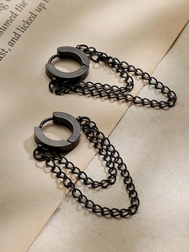 • GOTHIC PUNK GRUNGE BLACK HOOP CHAIN EARRINGS: The Hoop Chain Earrings are the perfect accessory to complete your punk grunge and gothic look. They are versatile enough to be worn for any occasion, whether it's a night out with friends or a casual day at the office.