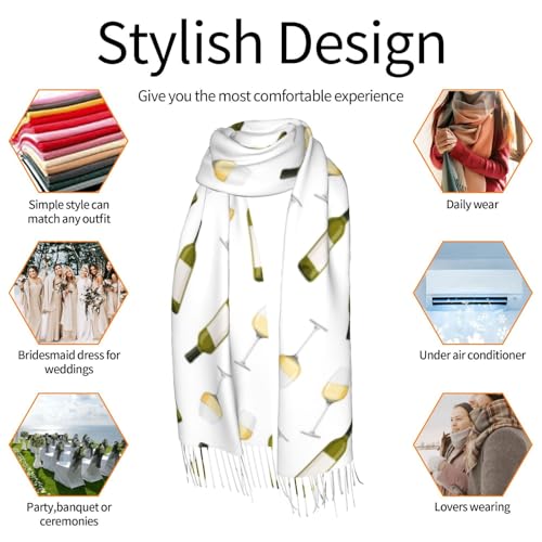 Scarf For Women Champagne Bottle And Glasses Pashmina Shawl Wraps For Women Travel Scarves Evening Dresses With Tassels 6