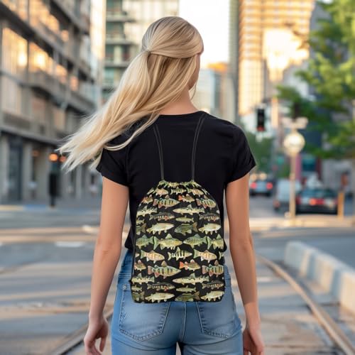 HOT ! Feelyou Fishing Drawstring Backpack 13x15.7inch Vintage Pike Fish Waterproof Gym Drawstring Bags Fishing and Hunting Beach Swim Travel Bag Sackpack