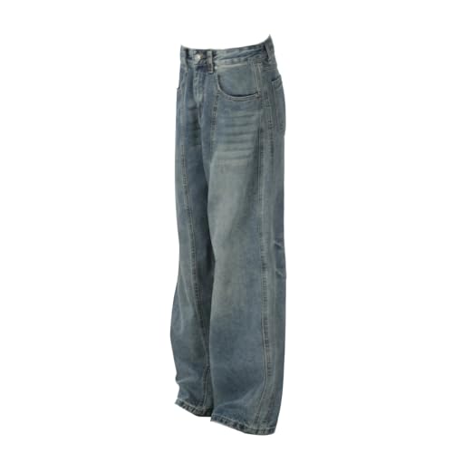 HOT ! Jeans Pants Trousers Denim Retro Street Trendy Washed Blue Loose Commuter Straight Leg for Man