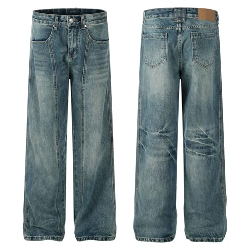 Jeans Pants Trousers Denim Retro Street Trendy Washed Blue Loose Commuter Straight Leg for Man 6