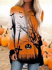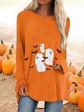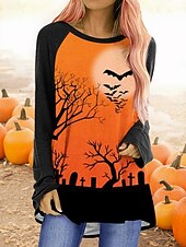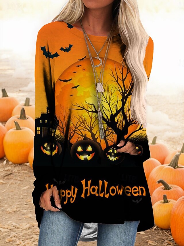 More information about Halloween Women's T shirt Pumpkin Long Sleeve Graphic Vintage Casual Long Sleeve Crew Neck Regular Tops Daily Print Black White Yellow Orange Spring Fall Prefall