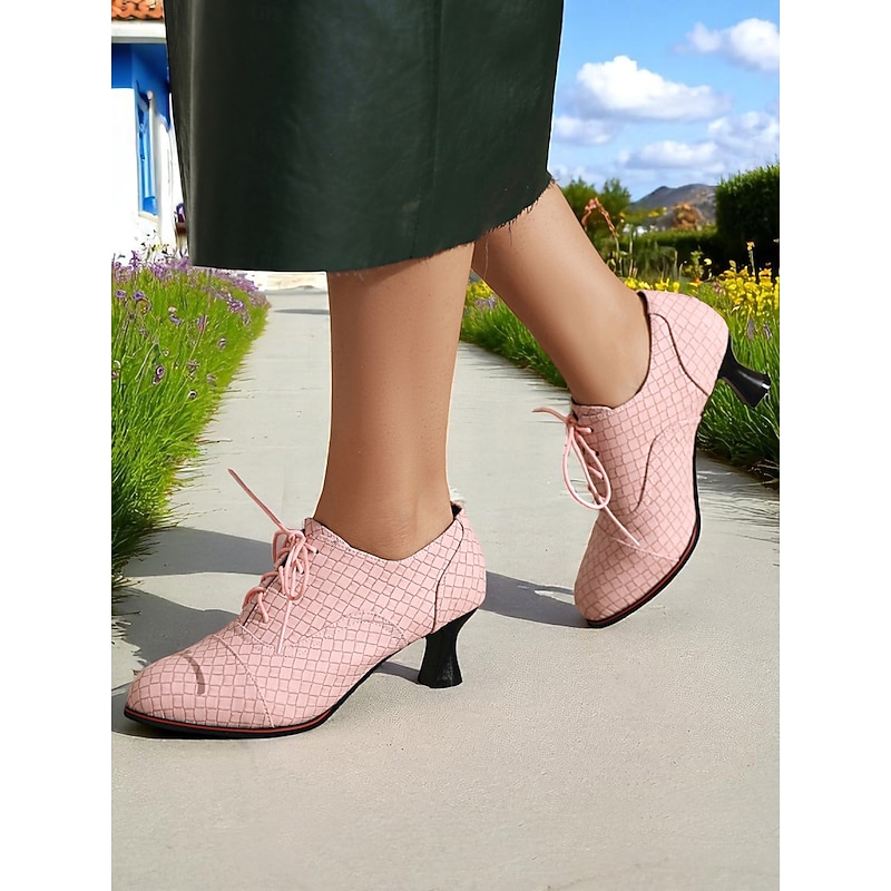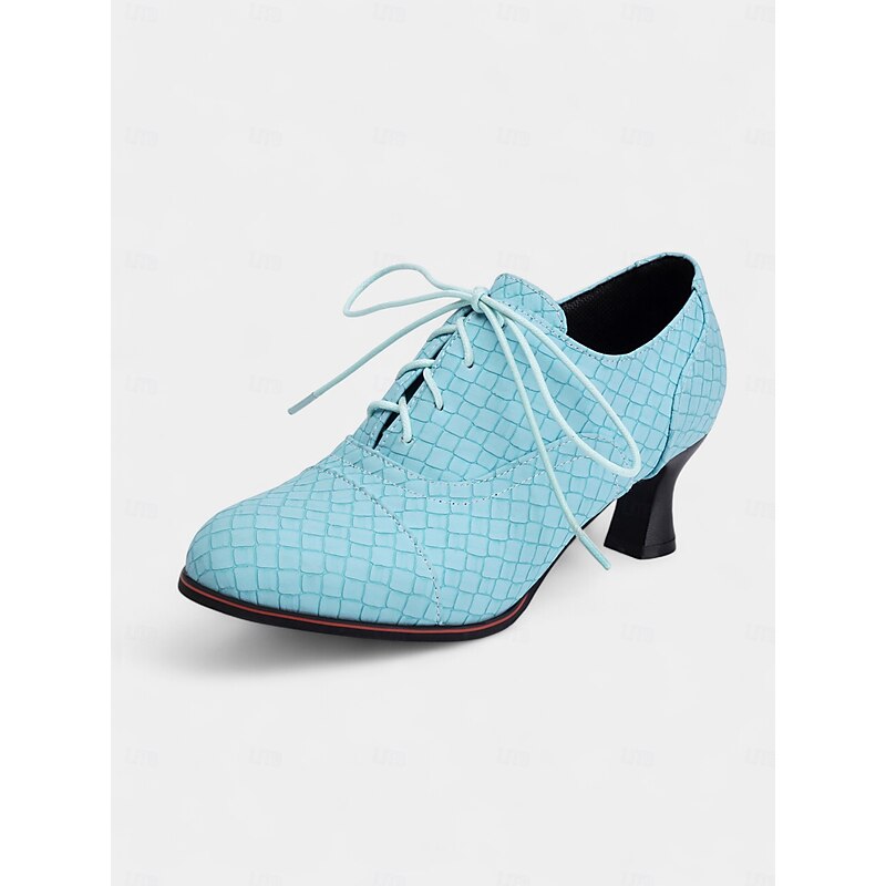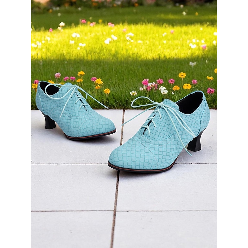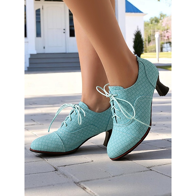 Women's 1950s Vintage Aqua Blue Lace-Up Oxford Heels with Quilted Pattern – Retro-Inspired  Shoes for Office, Casual Outings, and Formal Events 21