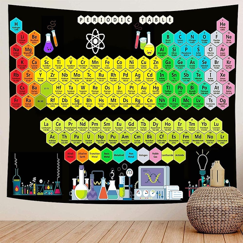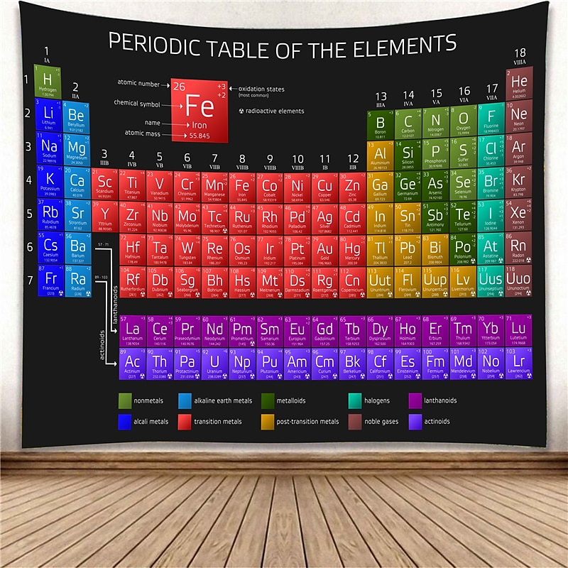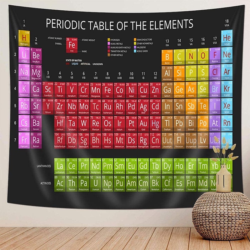 Wall Tapestry Art Decor Blanket Curtain Picnic Tablecloth Hanging Home Bedroom Living Room Dorm Decoration Polyester Color Periodic Table 14