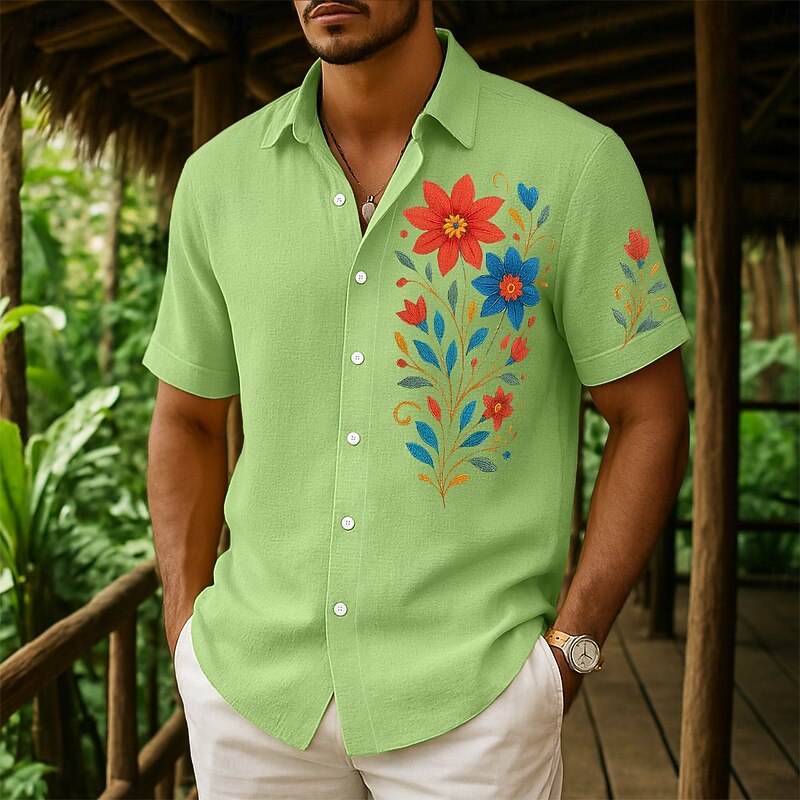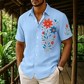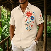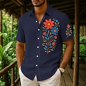 More information about Men's Shirt Linen Shirt Summer Shirt Beach Wear Button Up Shirt Floral Print Vacation Curise White Navy Blue Green Khaki Short Sleeve Collar Summer Spring & Summer Clothing Apparel