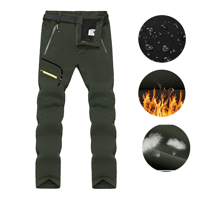 : Crafted from a robust blend of polyester and fleece, these men's outdoor pants are designed to be both water-resistant and windproof, ensuring you stay protected from harsh elements during any outdoor expedition. The fleece lining provides essential warmth, making these trousers ideal for cold-weather activities like skiing or snowboarding.