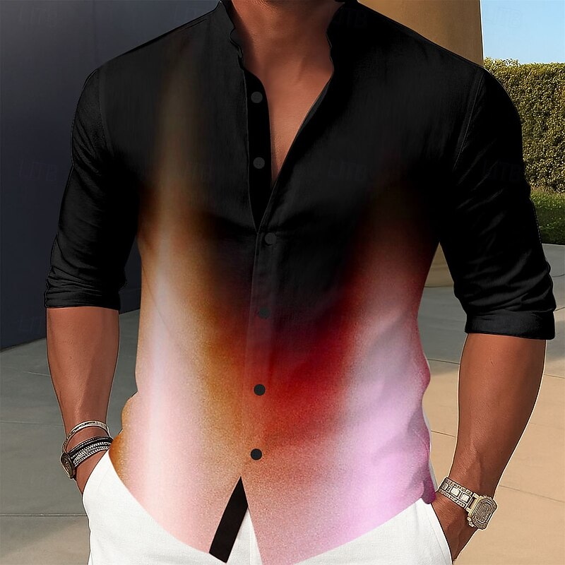 More information about Men's Gradient Color Shirt Button Up Shirt Stand Collar Shirt Long Sleeve Casual Outdoor Vacation Daily Spring Fall Mandarin Collar Band Collar 3D Print Linen Like Shirt Pink Blue Purple Green