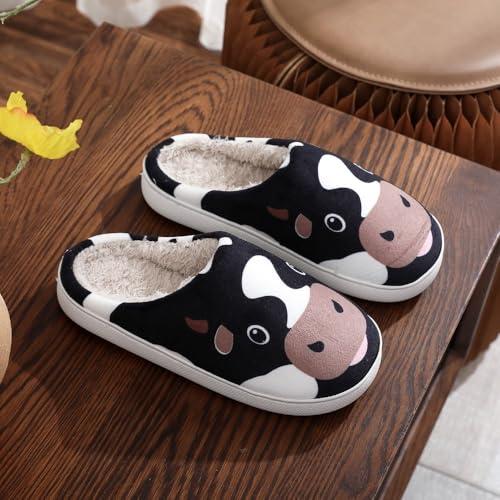 Cute Cow Slippers for Women & Men - Cozy Fluffy Close Toe House Shoes, Ultra Soft Durable Indoor Bedroom Slides, Kawaii Animals Christmas Gifts for Couples & Parents 1