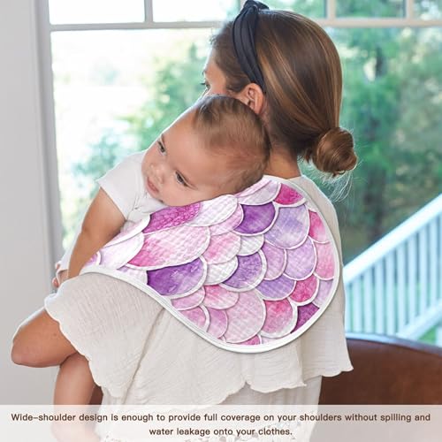 xigua Watercolor Mermaid Scales Baby Burp Cloths for Newborn Boys and Girls 2 Pack, Soft & Absorbent Cotton Baby Burp Cloth, Baby Washcloths, Newborn Towel, Burp Rags 5