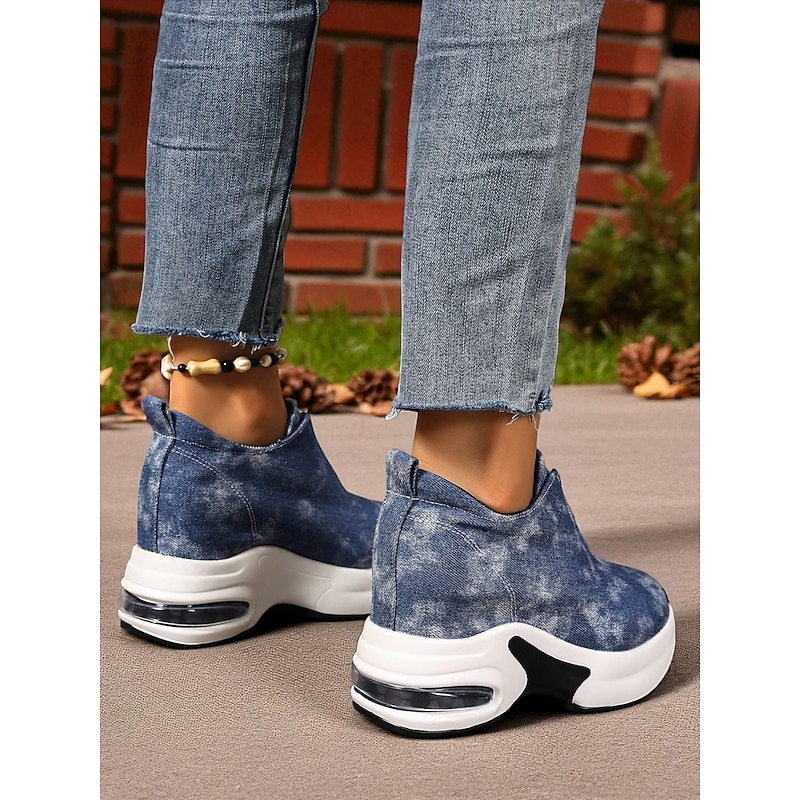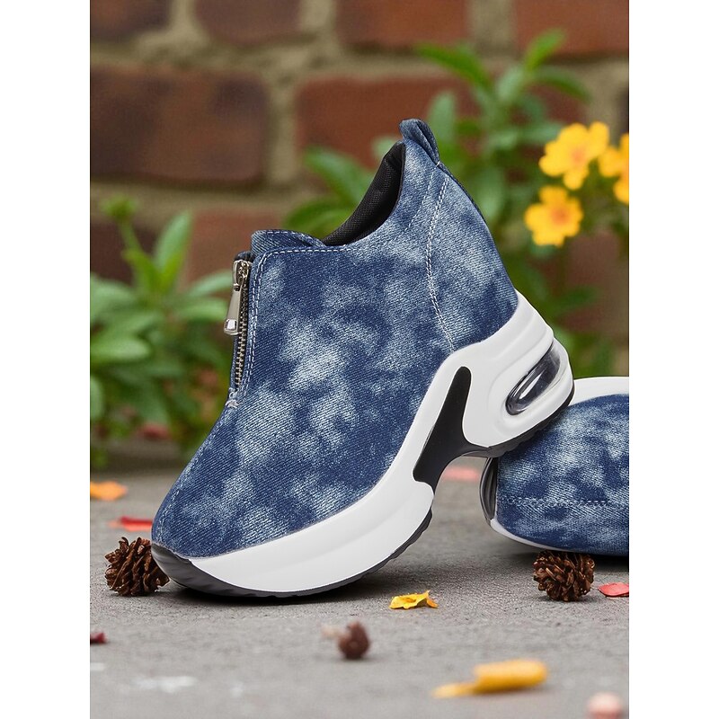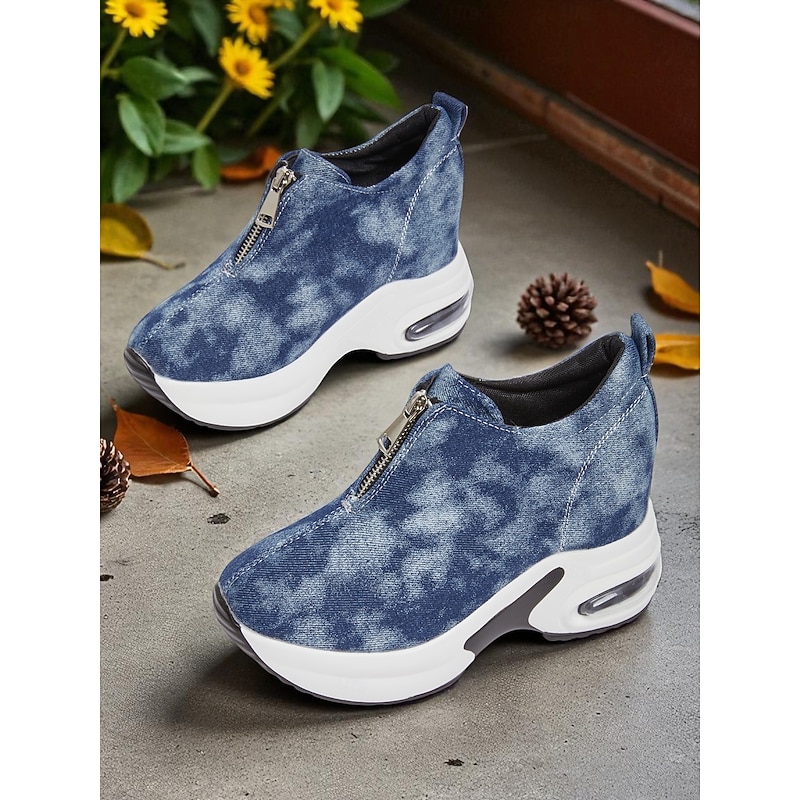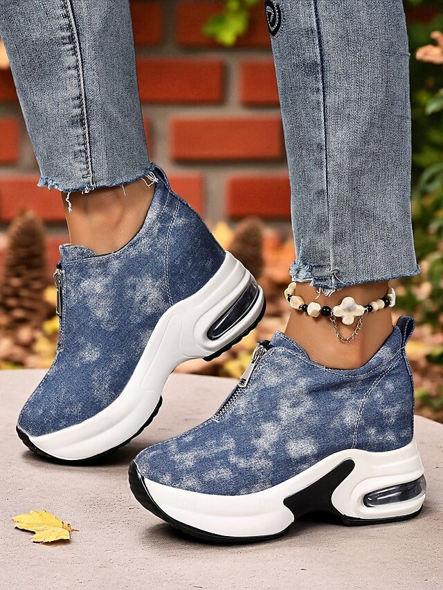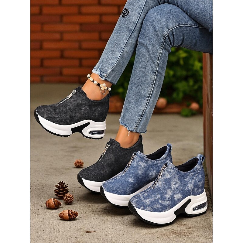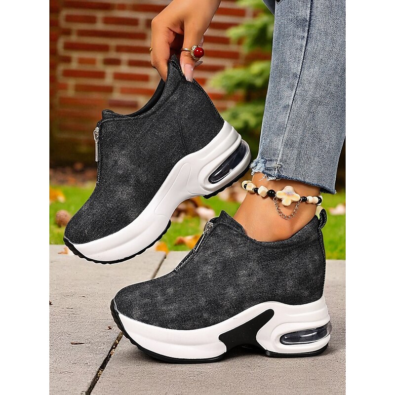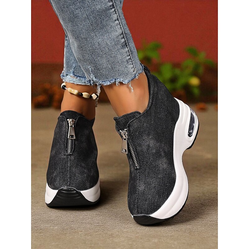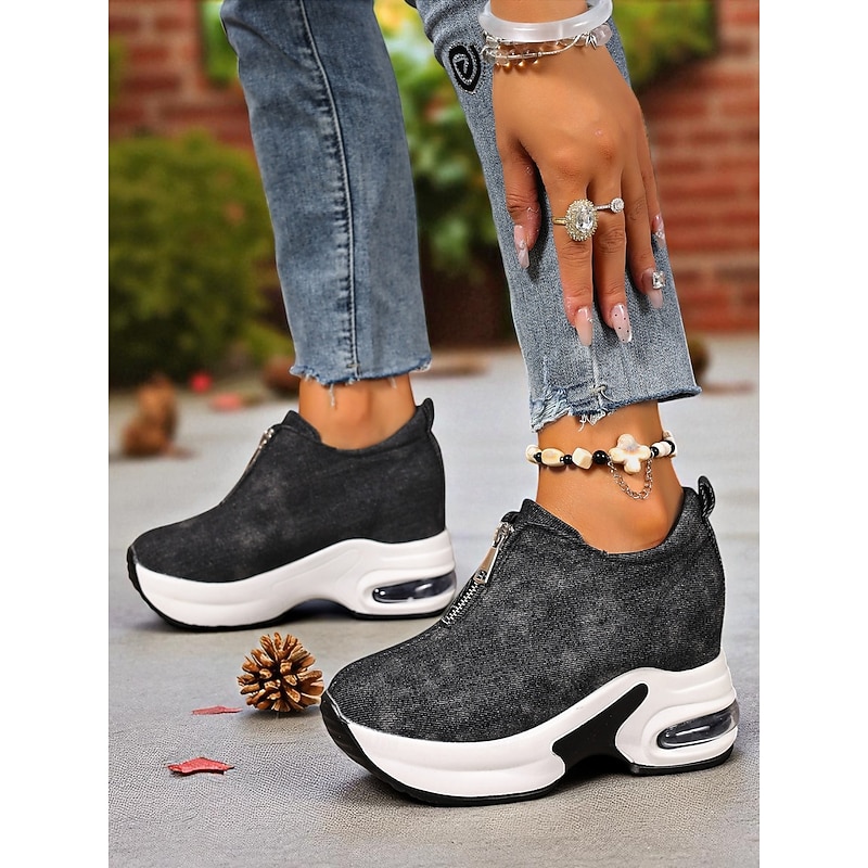 HOT ! Women's Canvas Platform Sneakers with Air Cushion – Trendy Zip-Up Wedge Walking Shoes for Casual Outfits, Street Style and Travel