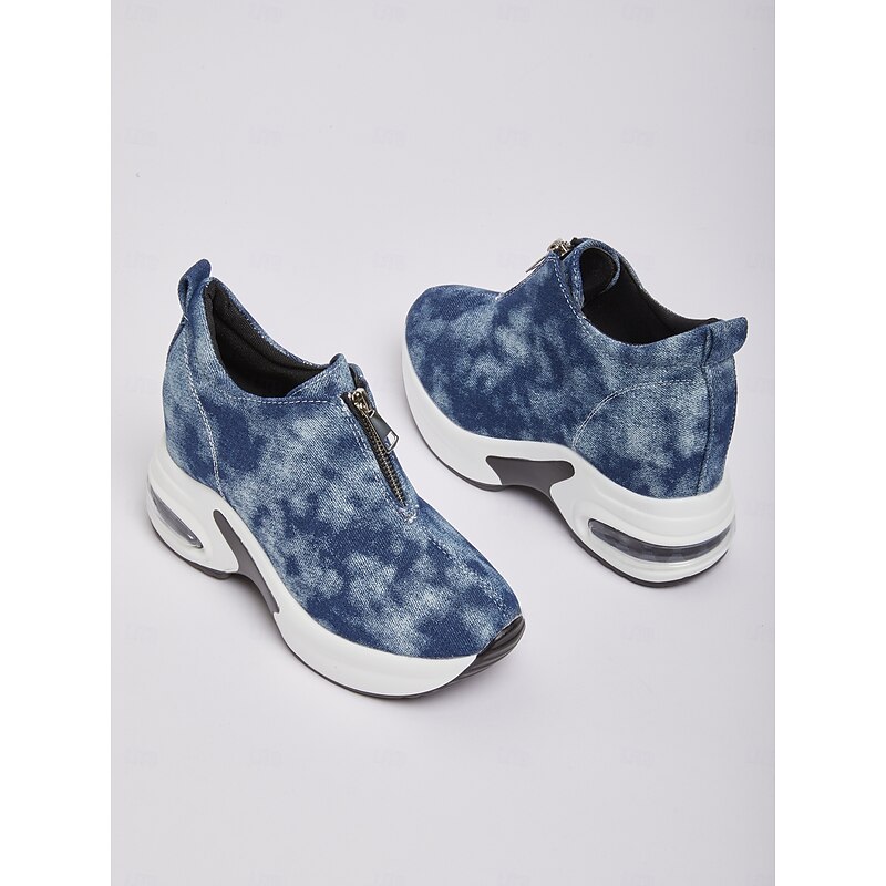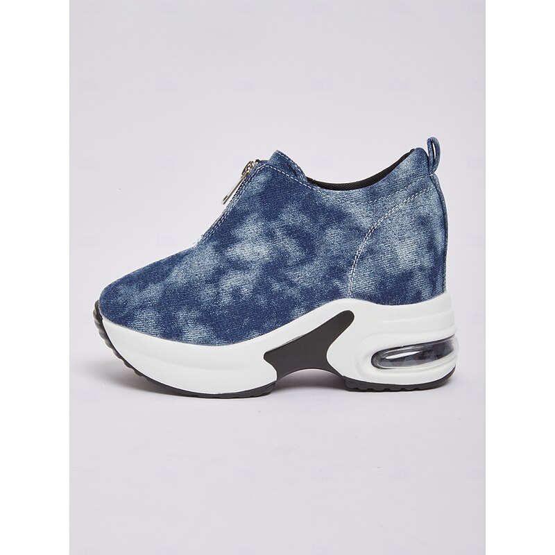 Women's Canvas Platform Sneakers with Air Cushion – Trendy Zip-Up Wedge Walking Shoes for Casual Outfits, Street Style and Travel 12