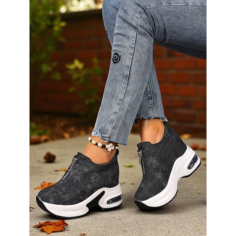 More information about Women's Canvas Platform Sneakers with Air Cushion – Trendy Zip-Up Wedge Walking Shoes for Casual Outfits, Street Style and Travel