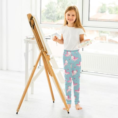 Boccsty Cartoon Pink Axolotls Hearts Girls Leggings Kids Yoga Pants Dance Active Tights 4T 5