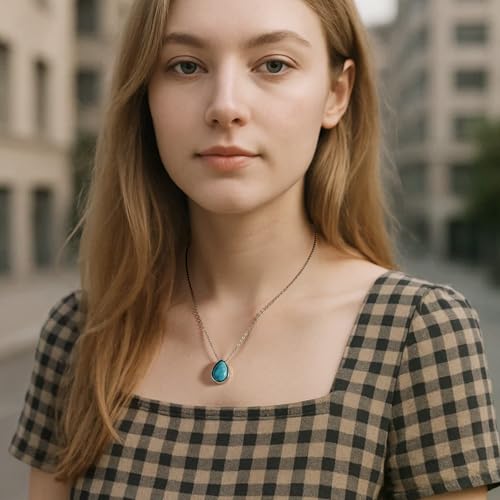 Turquoise Teardrop Necklace for Women – Silver Teardrop Turquoise Necklace with Genuine Stone, Silver Boho Gemstone Jewelry for Gift 7