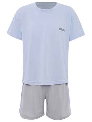 easyforever Kids Quick-dry Sports Set 2-piece T-shirt Shorts For Boys Girls Tennis Basketball Running Gym Workout Blue 11-12 Years 2