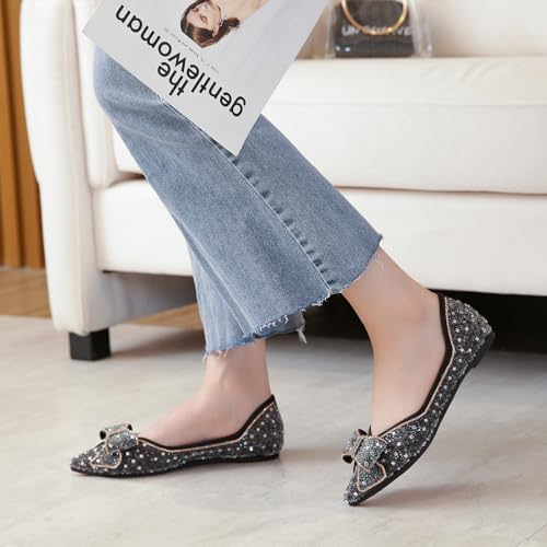 Women's Crystal Ballet Flats Sparkly Pointed Toe Comfort Wedding Working Casual Dressy Shoes 5