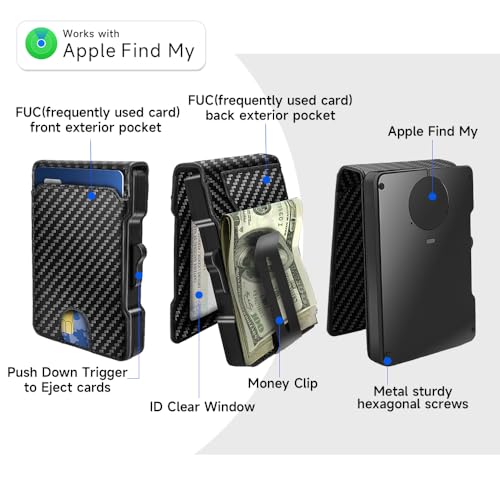 HOT ! Mens Air Wallet, with Smart Tracker, RFID Blocking Credit Card Clip, Bi-Fold Minimalist Wallet, Compatible with Apple Find My iOS Only, Replacement AirTag Chip(Carbon Fiber Pattern)