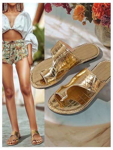 More information about GORGLITTER Women's Gold Metallic Cut Out Flat Sandals Dressy Toe Ring Vacation Slides Flip Flops