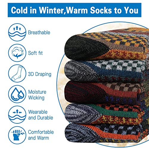 Heatuff Mens Thick Wool Socks Thermal Warm Winter Crew Socks 5 Pairs Multicolors 5