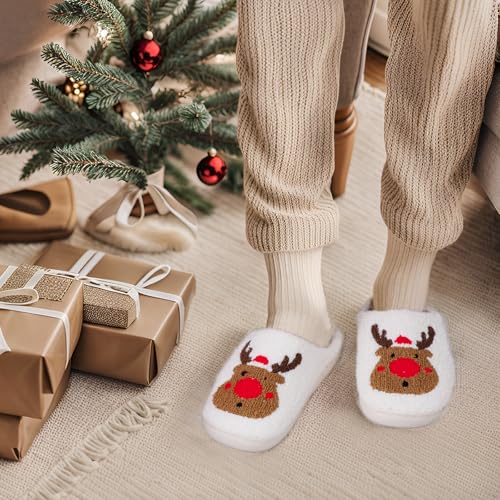 HOT ! Hoyuwak Christmas Elk Slide Slippers - Xmas Raindeer Slippers for Women, Men & Family - Fluffy, Warm, Indoor/Outdoor