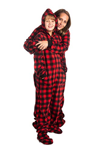 More information about BIG FEET PAJAMA CO. Hoodie Footed Buffalo Plaid Fleece Unisex Onesie Family Matching Pajamas