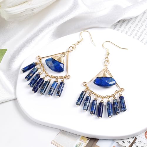 Lapis Lazuli Earrings - Bohemian Style Handmade Long Tassel Earrings - Emperor Stone Earrings For Women 5