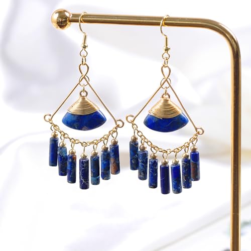HOT ! Lapis Lazuli Earrings - Bohemian Style Handmade Long Tassel Earrings - Emperor Stone Earrings For Women