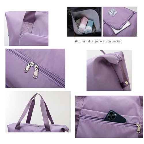 Expandable Travel Duffel Bag with Wet Pocket Shoes Compartment Overnight Weekender Bag Waterproof Gym Workout Handbag for Women and Man 5