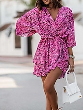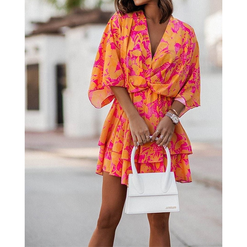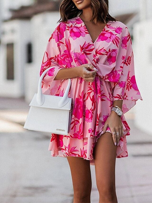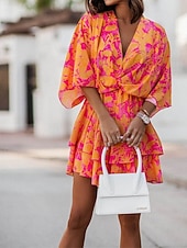 More information about Women's Mini Dress Casual Dress Summer Dress Print Dress Fashion Outdoor Holiday Date Regular Fit Floral Long Sleeve V Neck Pink Purple Orange Summer Spring