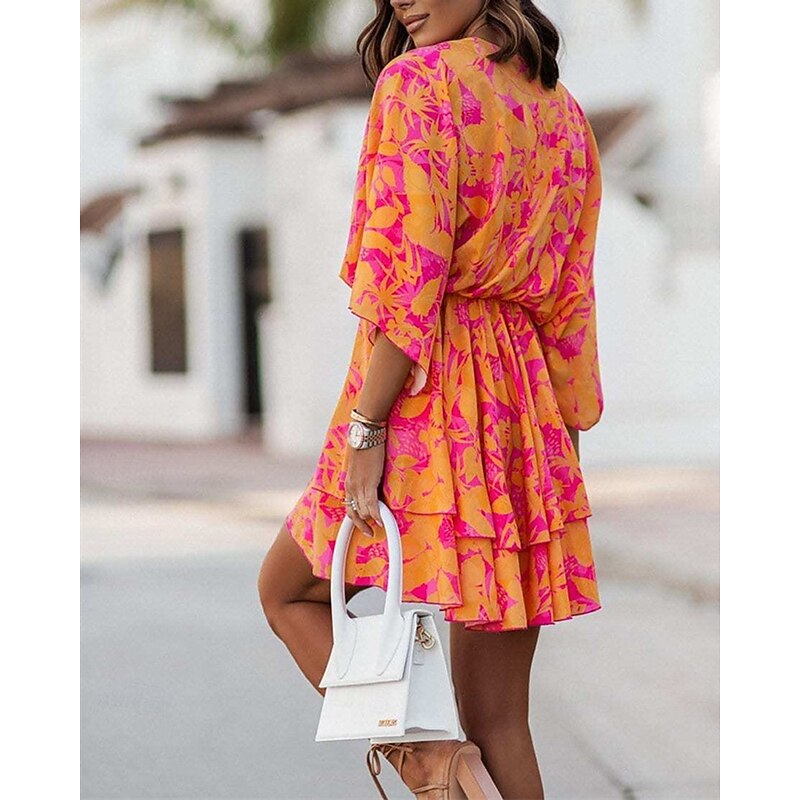 Women's Mini Dress Casual Dress Summer Dress Print Dress Fashion Outdoor Holiday Date Regular Fit Floral Long Sleeve V Neck Pink Purple Orange Summer Spring 6
