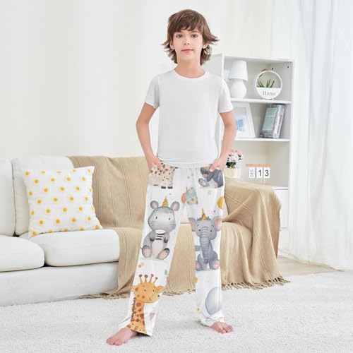 ZZXXB Birthday Giraffe Elephant Boys Long Pants Soft Trousers Elastic Waist Kids Lounge Bottoms with Pockets S-XL 1