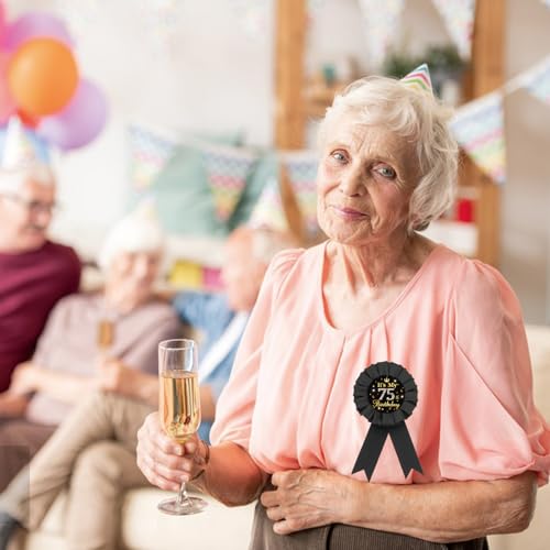 • 💛【Seventy Five Years Old Birthday Pin】This rosette button pin is made of high quality tinplate material and soft silk ribbon. The shiny badge can bring out the festive atmosphere of the event.