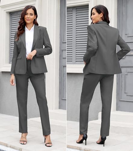 Women's Suit 2 Piece Slim Fit Formal Notched Lapel Lady Solid Work Outfits Casual Blazer Jacket Pants Set for Business Office 2