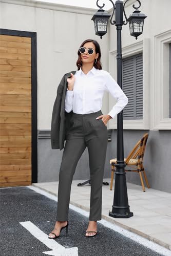 Women's Suit 2 Piece Slim Fit Formal Notched Lapel Lady Solid Work Outfits Casual Blazer Jacket Pants Set for Business Office 5