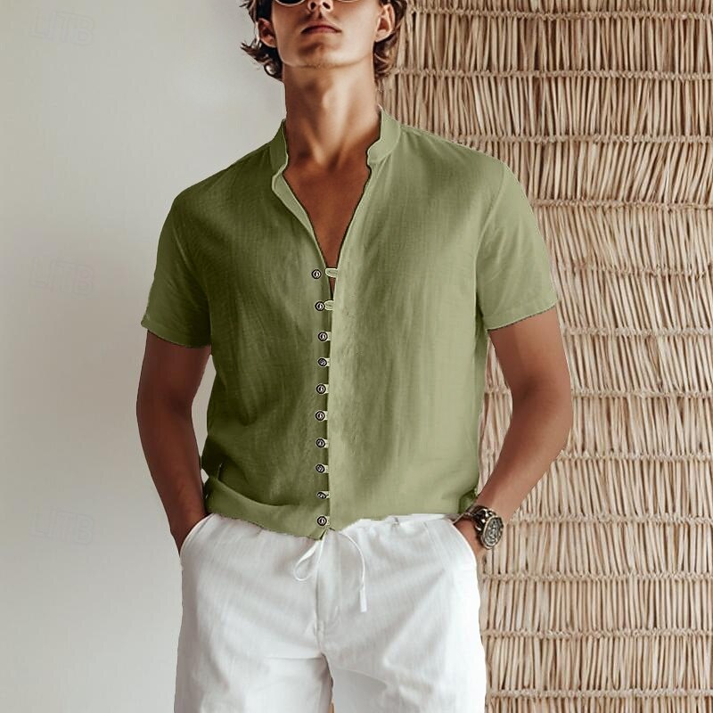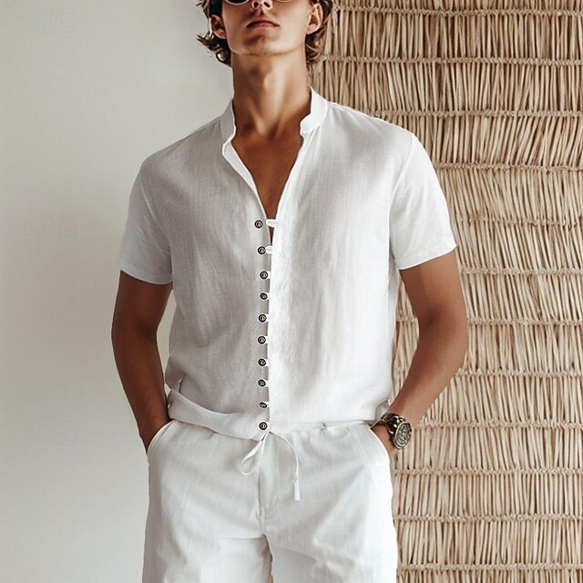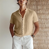 More information about Men's Linen Shirt Summer Shirt Beach Wear Button Up Shirt Plain Vacation Beach White Pink Blue Green Short Sleeve Stand Collar Spring & Summer Clothing Apparel Basic
