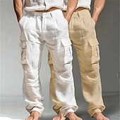 More information about Men's Cargo Trousers Linen Pants Summer Pants Casual Pants Multi Pocket Straight Leg Plain Comfort Breathable Full Length Outdoor Daily Going out Fashion Streetwear White+khaki Khaki+Black Inelastic