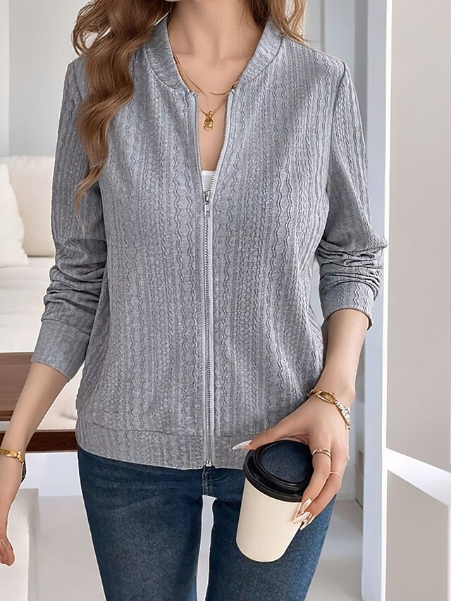 HOT ! Women's Texture Sweatshirt Zip Up Sweatshirts Plain Streetwear Casual Comfy Long Sleeve V Neck Regular Tops Street Holiday Going out Zip Up Black Gray Fall