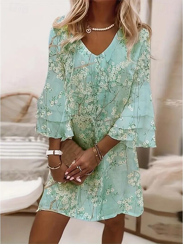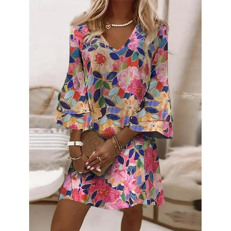 HOT ! Women's Mini Dress Sundress A Line Dress Boho Party Regular Fit Floral Graphic 3/4 Length Sleeve V Neck Light Pink Light Green Dark Pink Sky Blue Summer Spring