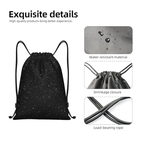 • HIGH QUALITY MATERIALS: black glitter Drawstring backpack for sports is made of high-density honeycomb cloth material, which can withstand daily wear and tear.Furthermore, drawstring closure allows you to store things quickly and take them in and out easily.Gift storage bag is very comfortable to carry even when fully loaded.