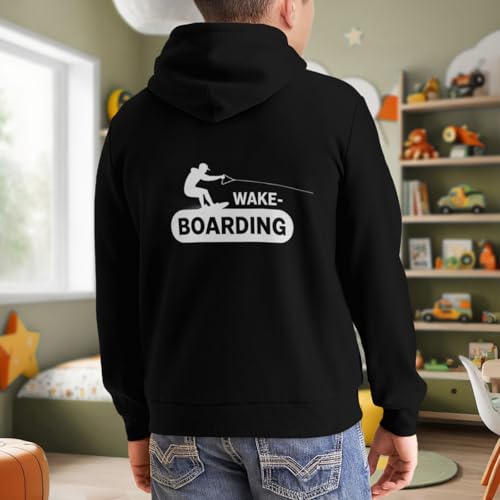 Kids Vintage Wakeboarding Boys Girls Lightweight Kangaroo Pocket Fleece Hoodies 6