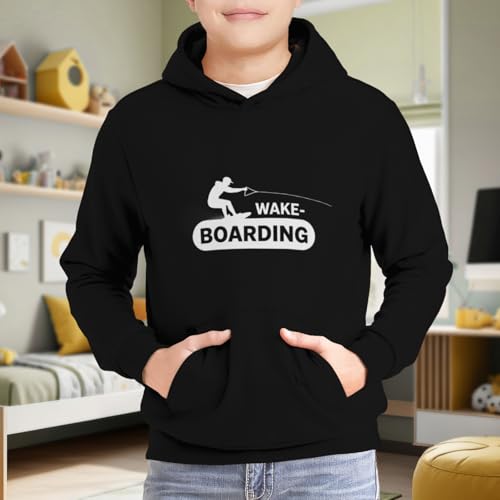 Kids Vintage Wakeboarding Boys Girls Lightweight Kangaroo Pocket Fleece Hoodies 4