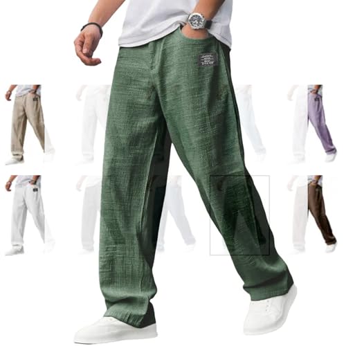 Mokaloha Mens Pants, Cocoparo Men's Casual Hemp Embroidered Logo Drawstring Loose Elastic Waist Pocket Trousers 7