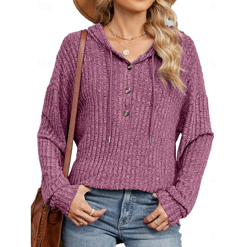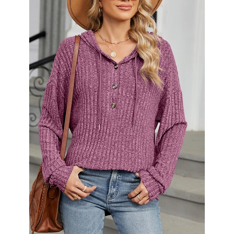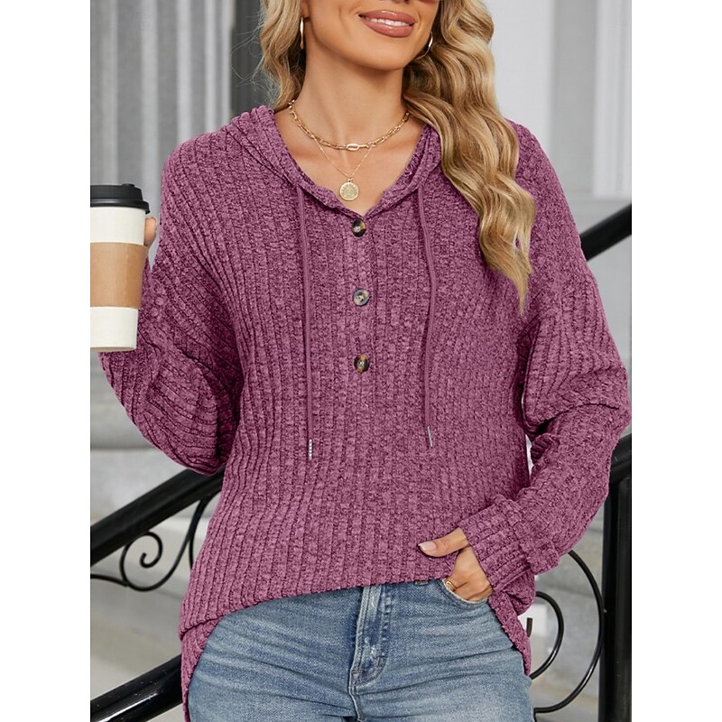 More information about Women's Texture Sweatshirt Pullover Hoodie Sweatshirt Plain Casual Long Sleeve Hooded Regular Tops Street Dailywear Buttons Blue Fuchsia Gray Spring Fall